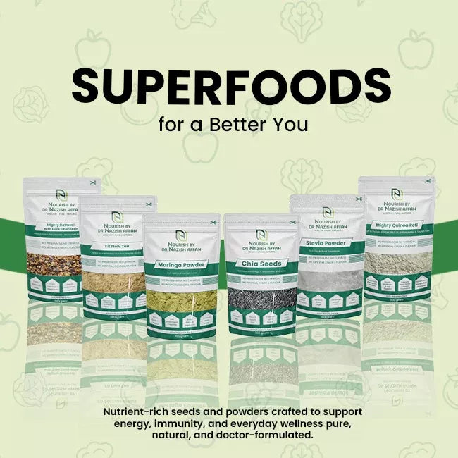 At Nourish by Dr. Nazish Affan, we blend expertise with passion for natural wellness. Our products are crafted from premium, nutrient-rich ingredients, making healthy living easy, enjoyable, and sustainable. Rooted in integrity and backed by science, we’re more than a brand—we’re a community inspiring mindful, balanced lifestyles. Choose us for quality you can trust and wellness you can feel.