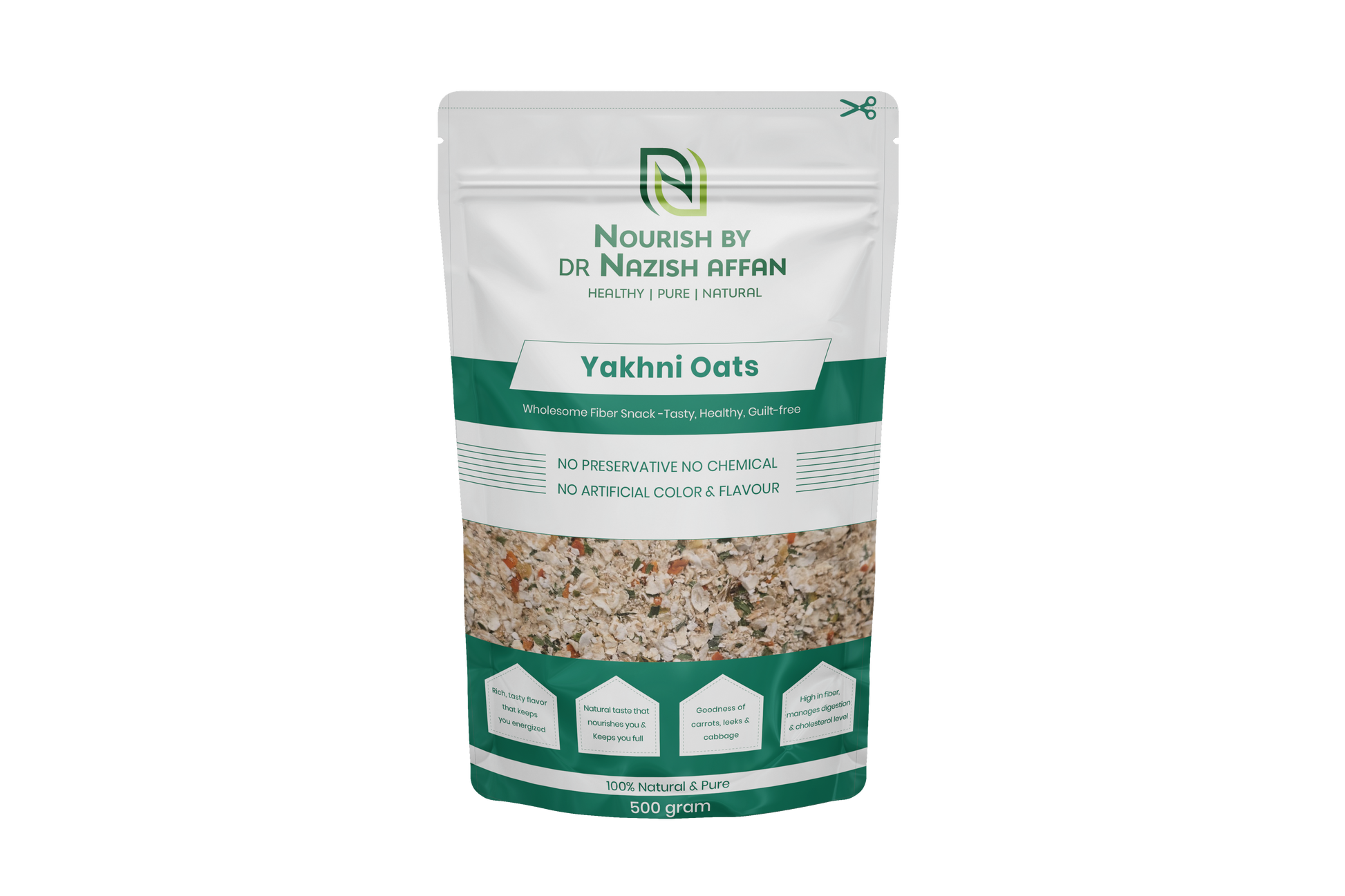 A warm, nourishing and flavour-rich oat blend made with roasted oats, dehydrated vegetables and our signature Yakhni Masala. Perfect for digestion, energy and healthy weight control — ready in just a few minutes.